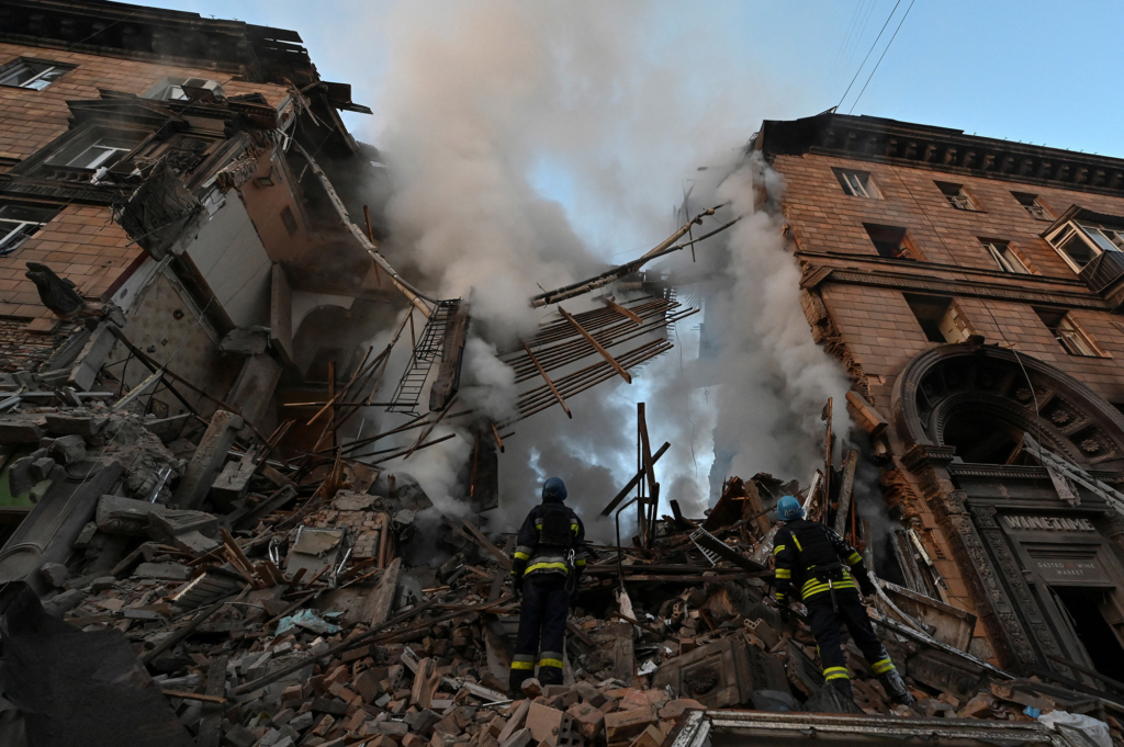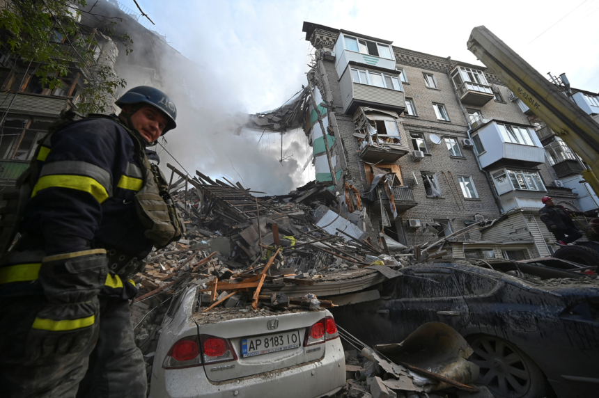 Two women died and at least five people were trapped in rubble after Russian missiles hit buildings in the city of Zaporizhzhia in southern Ukraine early Thursday, Oleksandr Starukh, head of the regional military administration, said in a post on Telegram.
