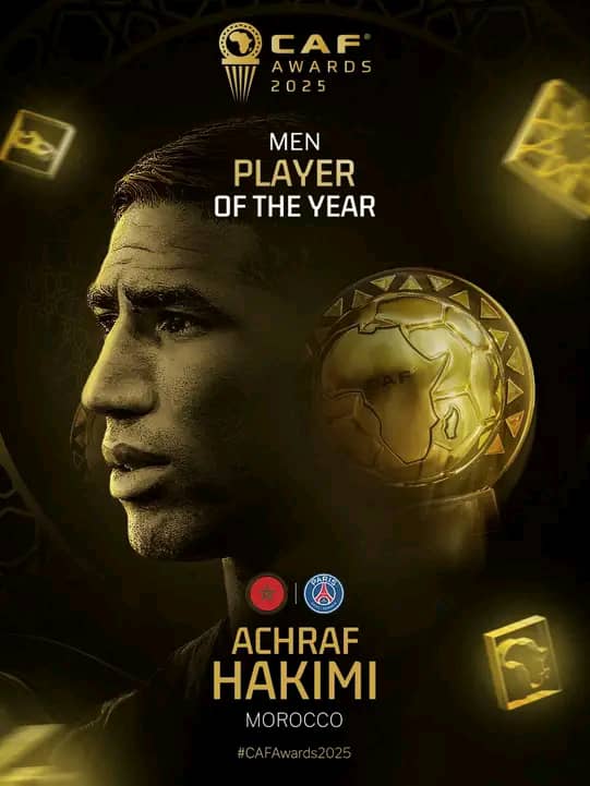 Hakimi’s triumph caps a remarkable season in which he helped PSG secure an unprecedented Champions League title, scoring the opening goal in their 5-0 demolition of Inter Milan in the final. The French club also collected the Ligue 1 championship, Coupe de France, UEFA Super Cup and French Super Cup, though they fell short in the Club World Cup final against Chelsea.