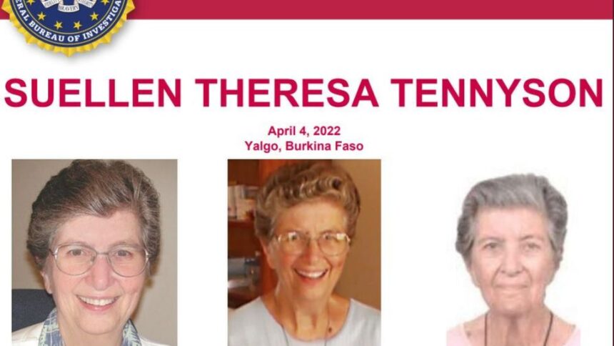 An American Catholic nun, Suellen Tennyson, who was kidnapped by armed men in northern Burkina Faso in April has been freed, said Theophile Nare, the bishop of the local diocese of Kaya on Wednesday.