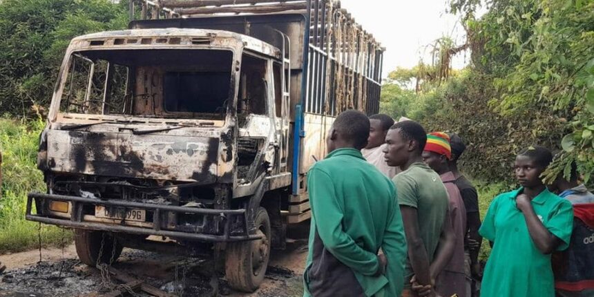 Mr Twaha Kasirye, the southern regional police spokesperson, said by the time police arrived, residents had left the scene and the truck was up in flames.