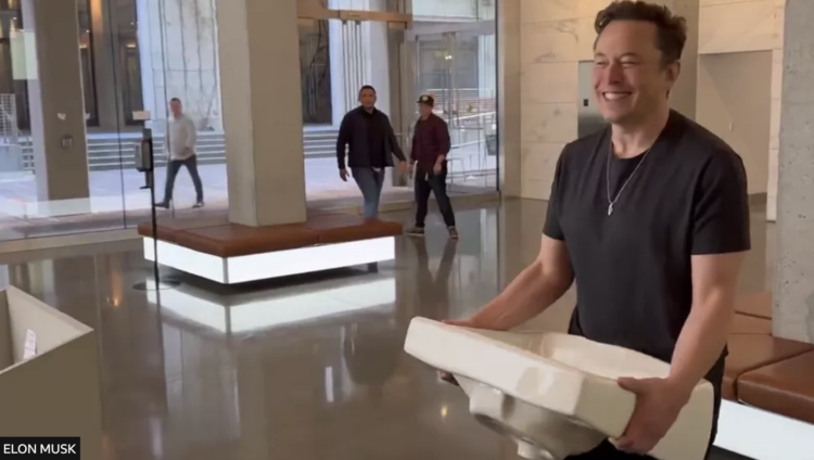 Elon Musk has posted a video of himself walking into Twitter’s headquarters carrying a sink, raising speculation about the fate of his planned takeover.