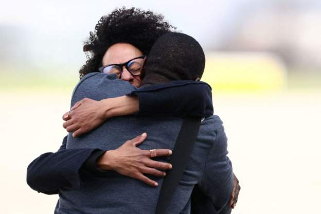 He was warmly embraced by family members and President Emmanuel Macron on the tarmac of an air base near Paris.