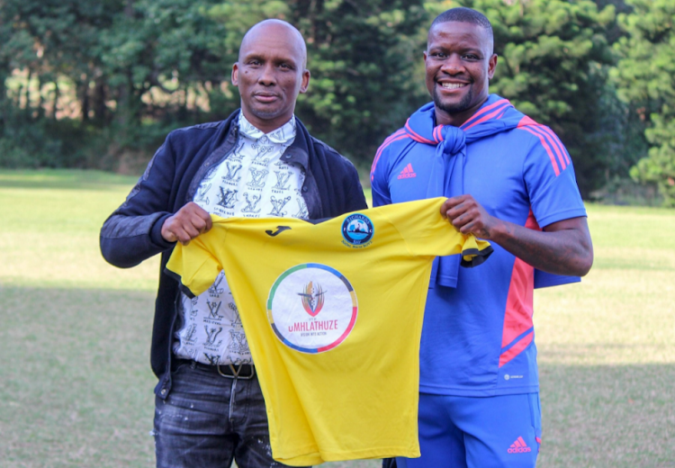 Richards Bay FC owner Jomo Biyela and new signing Ntsikelelo Nyauza. Image: RICHARDS BAY FC