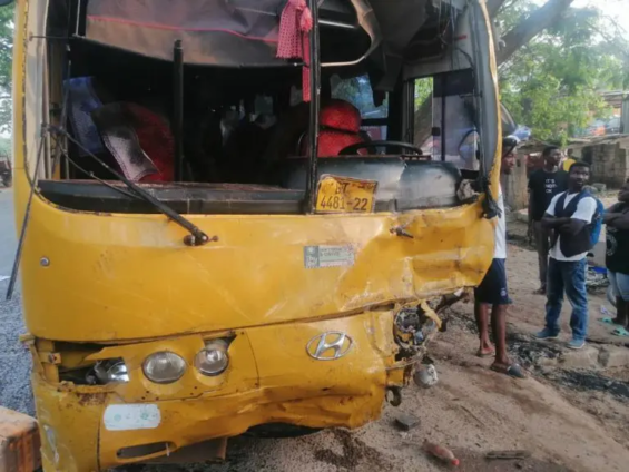 “The yellow bus had loaded church members who went for camp meeting at Accra. Whilst returning to Asankragwa, it collided with the sprinter vehicle. The driver of the Assemblies of God bus was unstable when I arrived here”, Kofi Amoah, an eyewitness narrated.