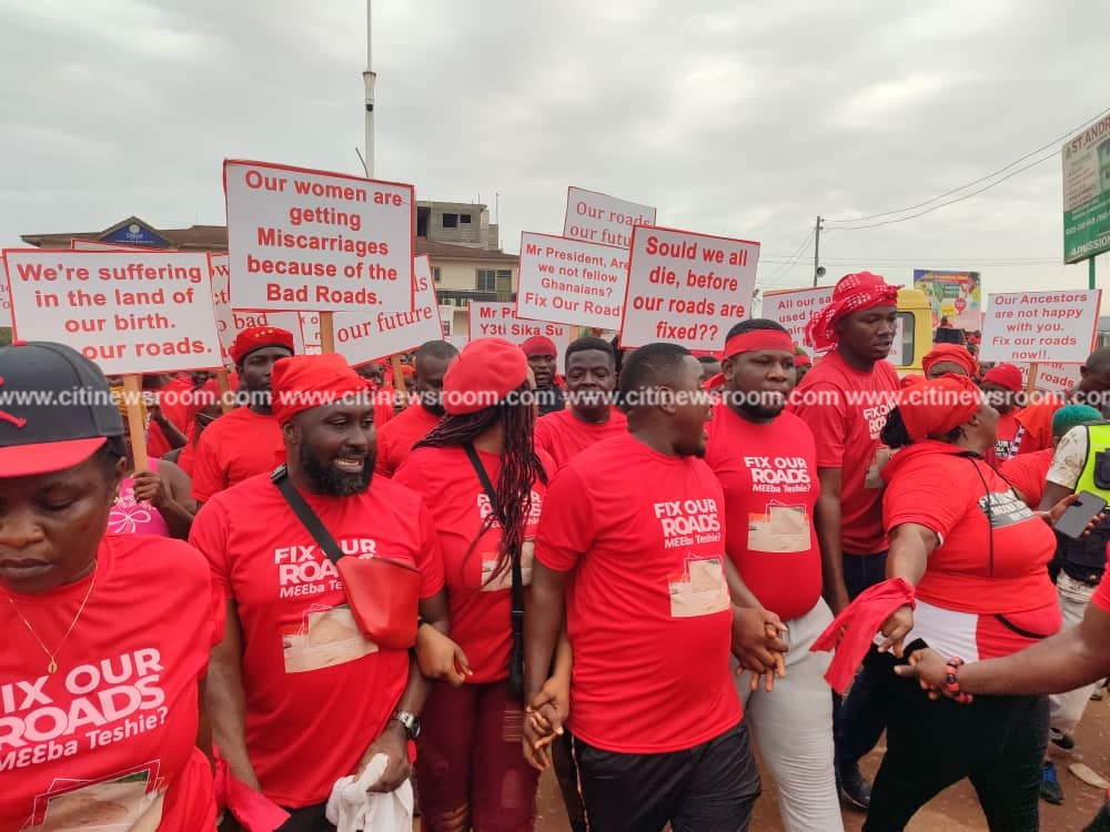 Thousands of Teshie residents have massed up in the area to protest the deplorable state of their roads.