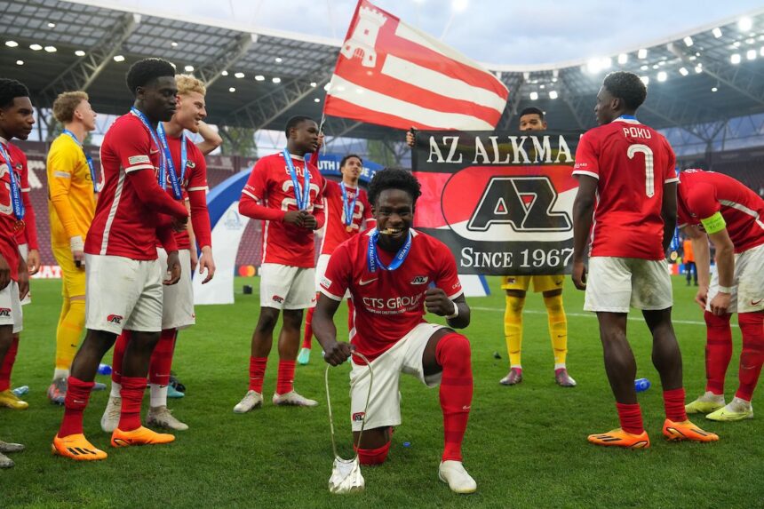 On Monday at Stade de Geneve, Ghanaian youngster Ernest Opoku scored two goals to help his team, AZ Alkmaar U19, win the UEFA Youth League title with a 5-0 victory over HNK Hajduk U19.