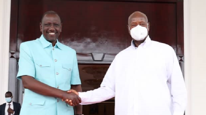 Kenya's William Ruto and Ugandan president, Yoweri Museveni. PHOTO/@WilliamsRuto/X