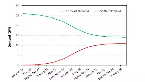 Combined with the growing use of rooftop solar in residential and commercial buildings, my prediction, based on my modelling studies, is that by March 2026, the shifted demand will be 11 GW, leaving a residual demand on the national grid at 14 GW, or about 40% of the average demand in 2020.