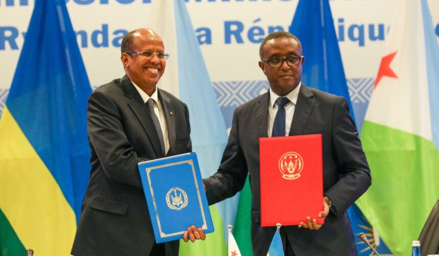 The signing ceremony was presided over by Rwanda’s Minister of Foreign Affairs Dr. Vincent Biruta alongside Djibouti’s Minister of Foreign Affairs Mahamoud Ali Youssouf.