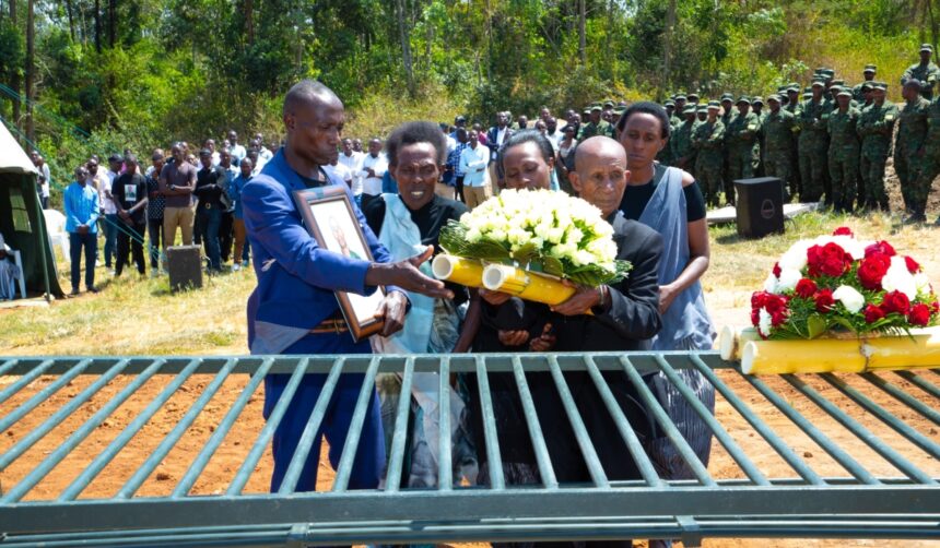 Family members of Late Sergeant Eustache Tabaro, lay wreaths during the burial at the Kanombe Military Cemetery on Tuesday, July 18. Courtesy