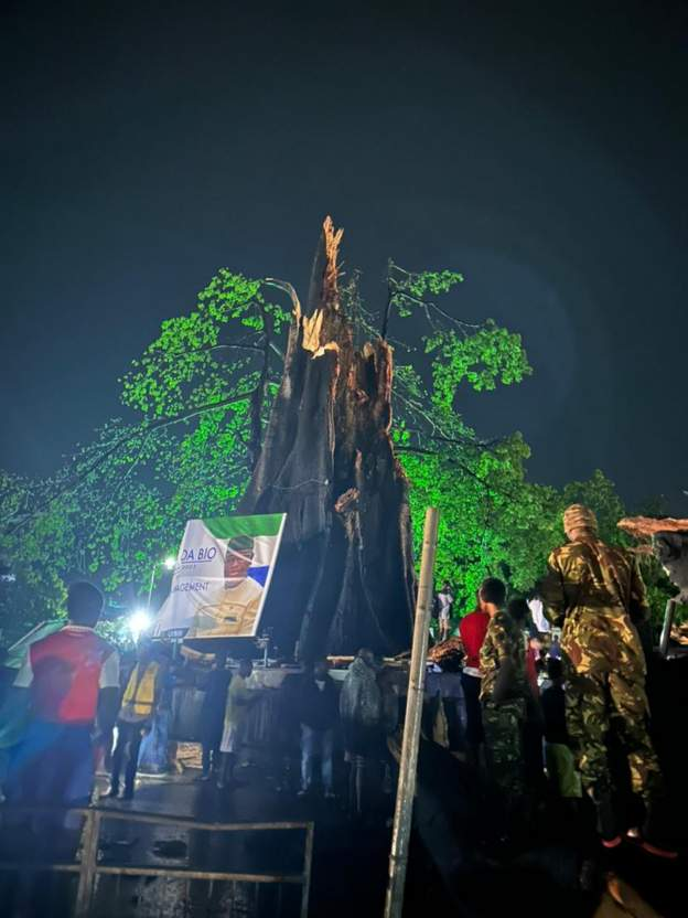 President Julius Maada Bio said the tree fell after a heavy downpour on Wednesday night. He described it as a “great loss to the nation”.