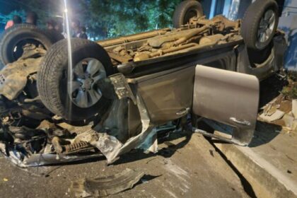 Two occupants in a moving car narrowly escaped death on Thursday evening…