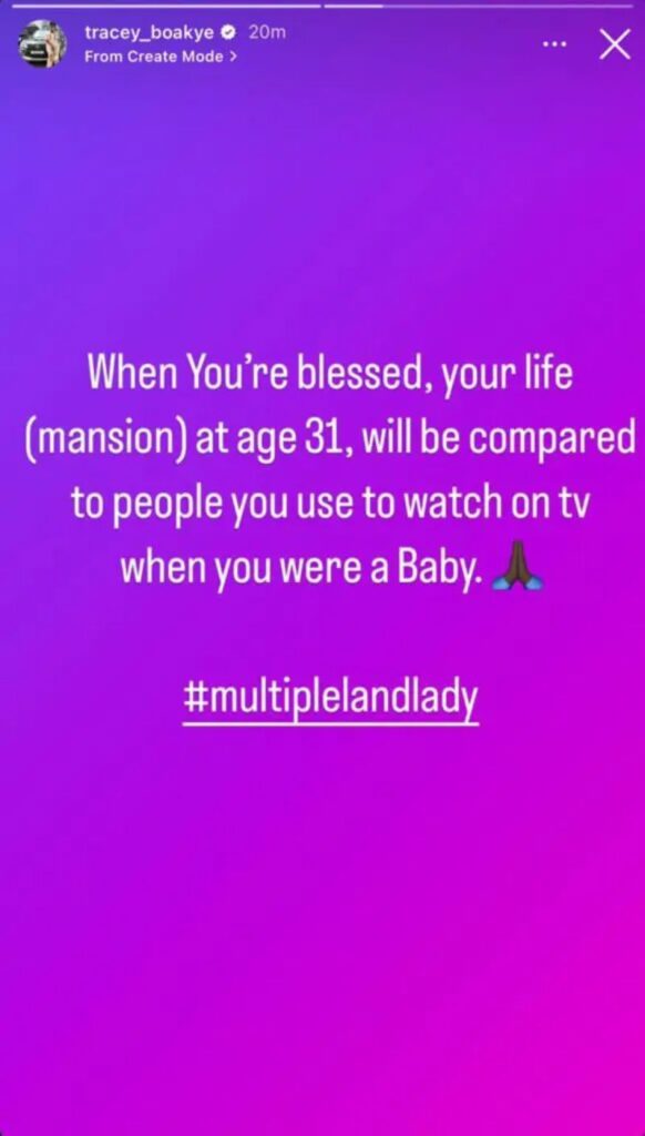 According to Tracey Boakye, she has done extremely well for herself because just at age 31, she owns a house, cars and a functioning business and on that account her haters should stop making a fool out of themselves.