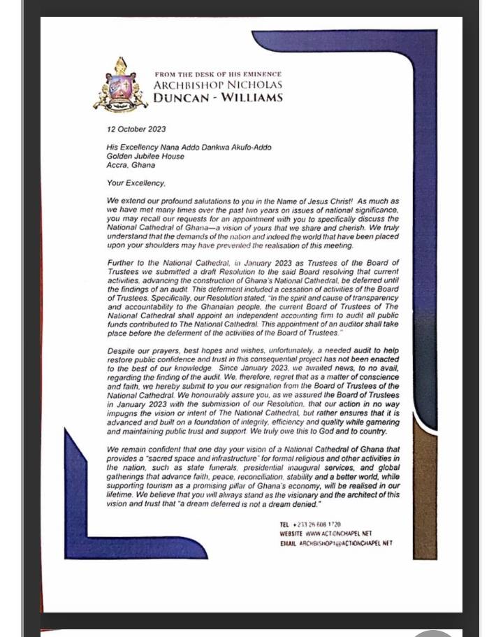 Two prominent Ghanaian pastors, Archbishop Nicholas Duncan-Williams and Rev. Eastwood Anaba, have announced their resignation from the National Cathedral Board, established by the government to oversee the building of a 5,000-seat cathedral..